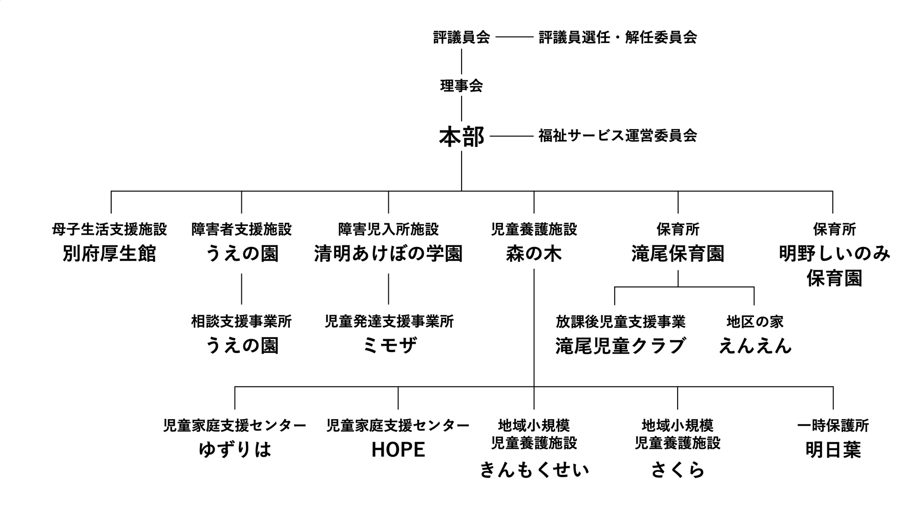 大分県福祉会の前身は、社会福祉・社会保障などに関する大分県の4団体が統合された財団法人大分県福祉事業協会です。1952年に社会福祉法人となり、現在のような子どもや障がいのある人、母子、子どもの未来に関係するさまざまな特性の施設を運営するにいたります。