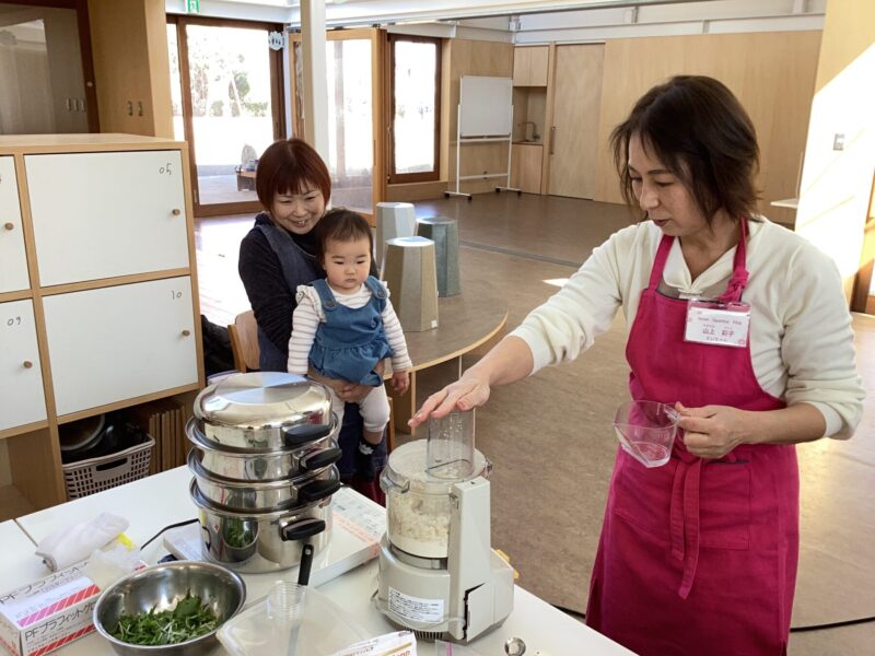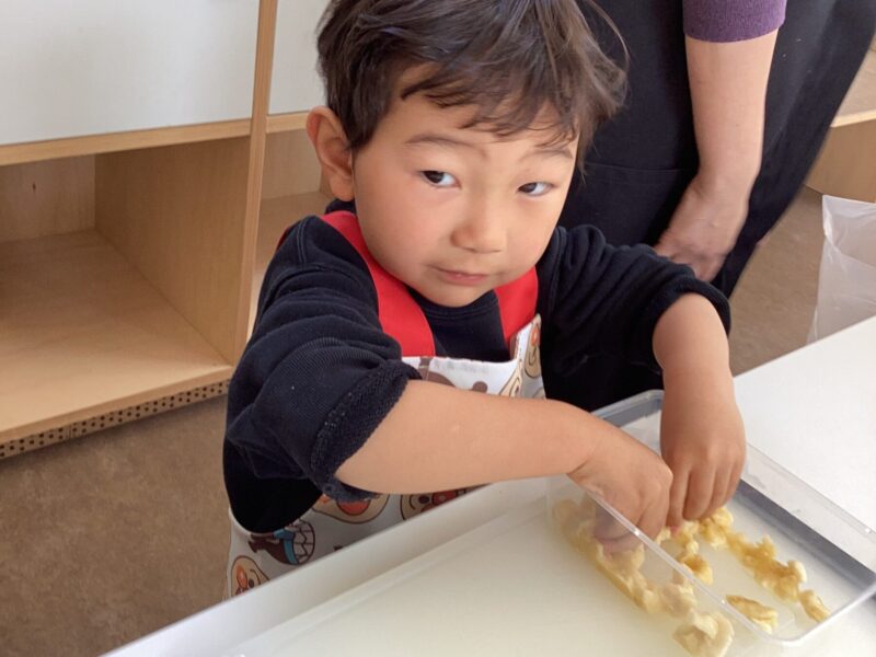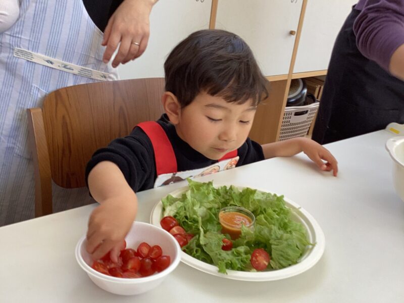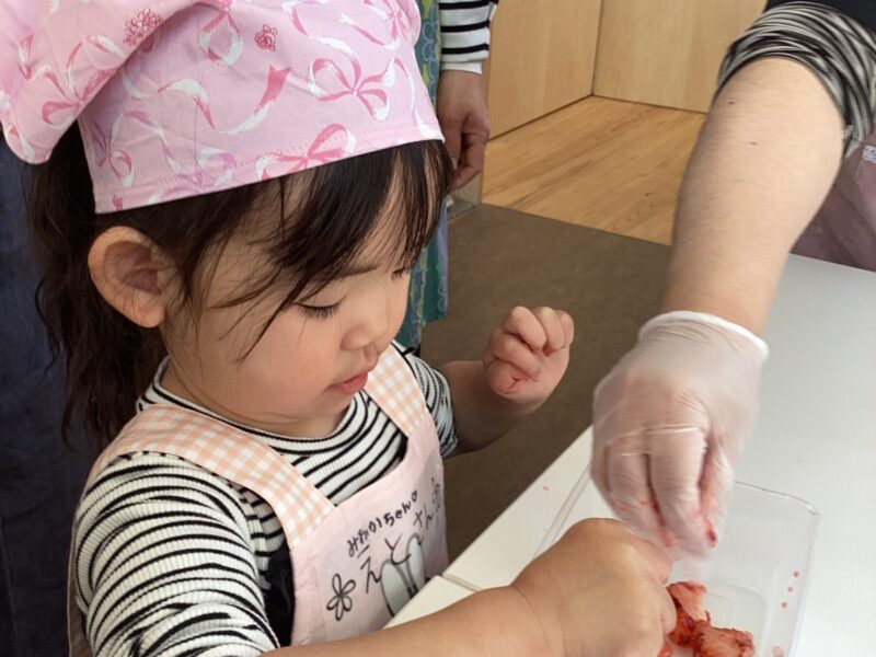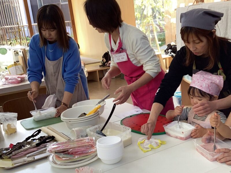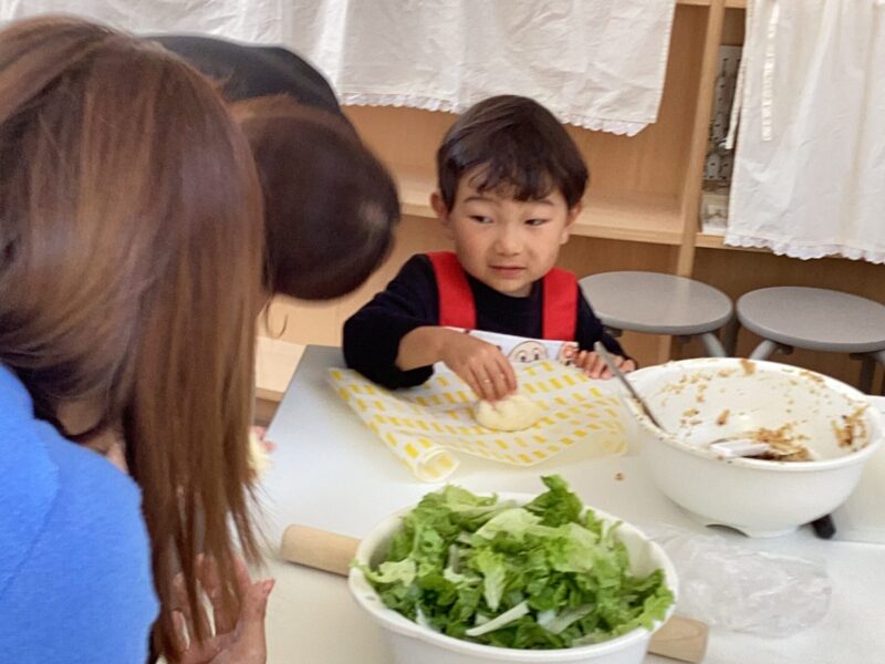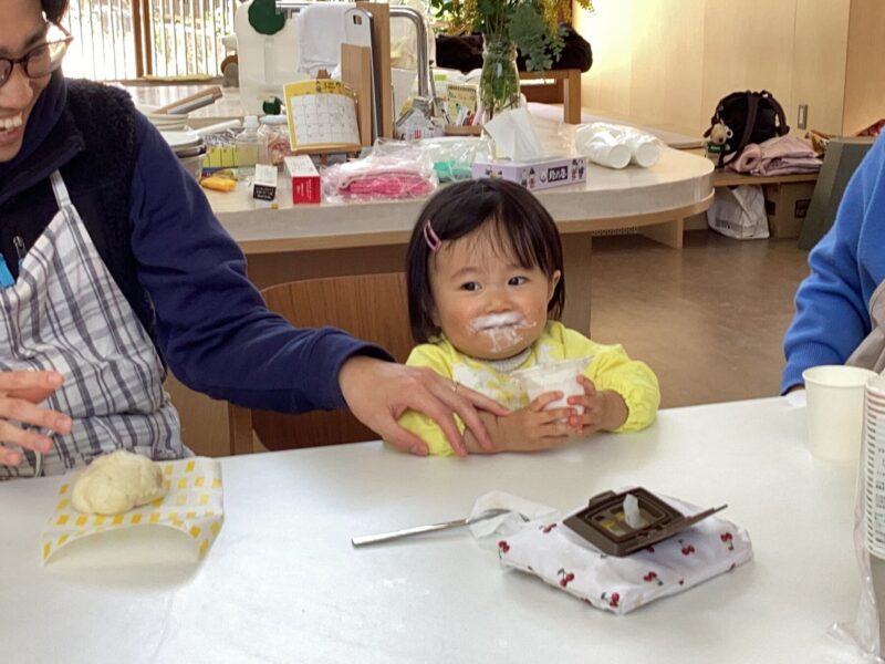 親子で野菜の皮むきや型抜き、果物を潰してアイスクリーム作り、肉まん作り盛沢山でした✨