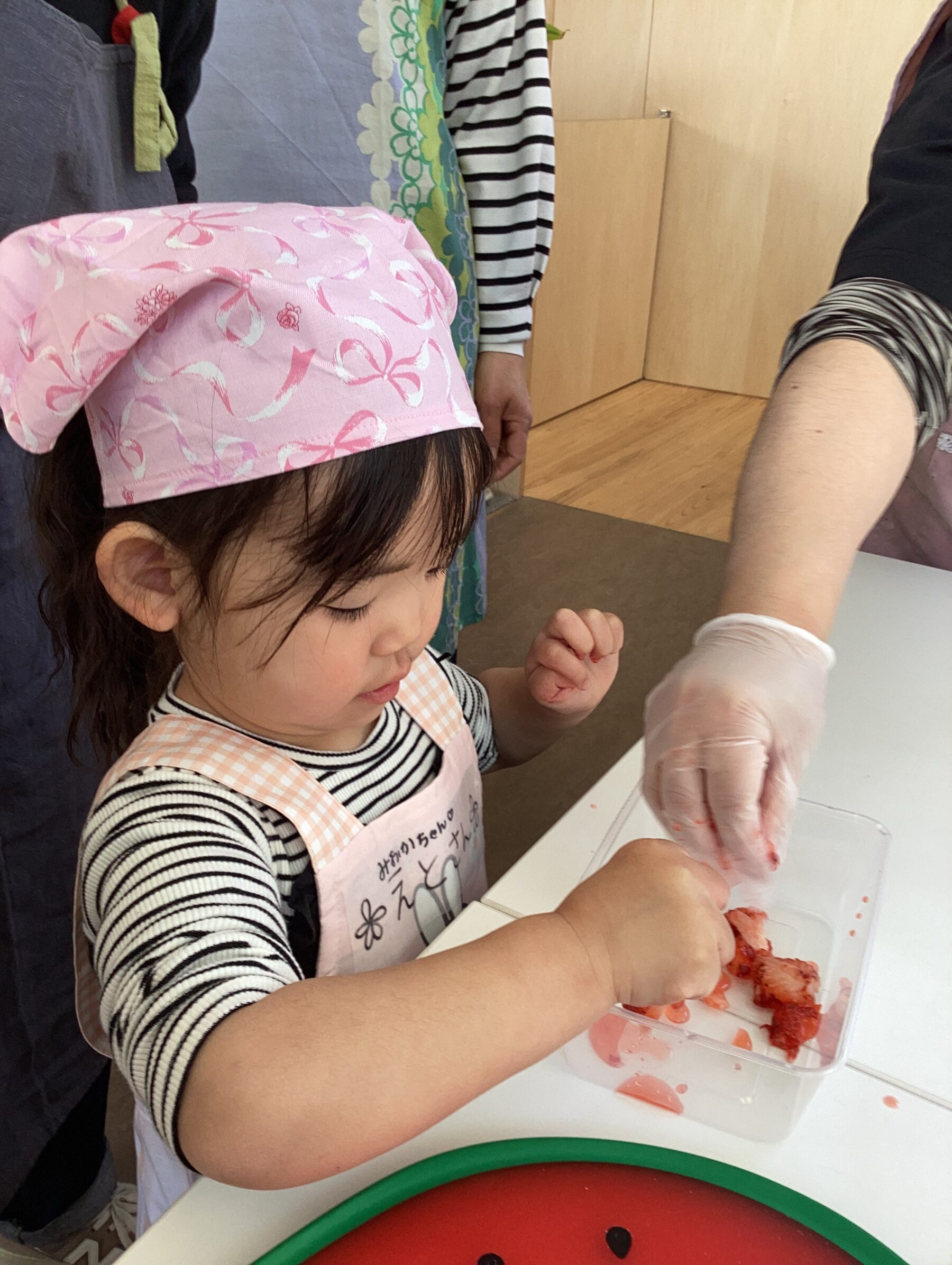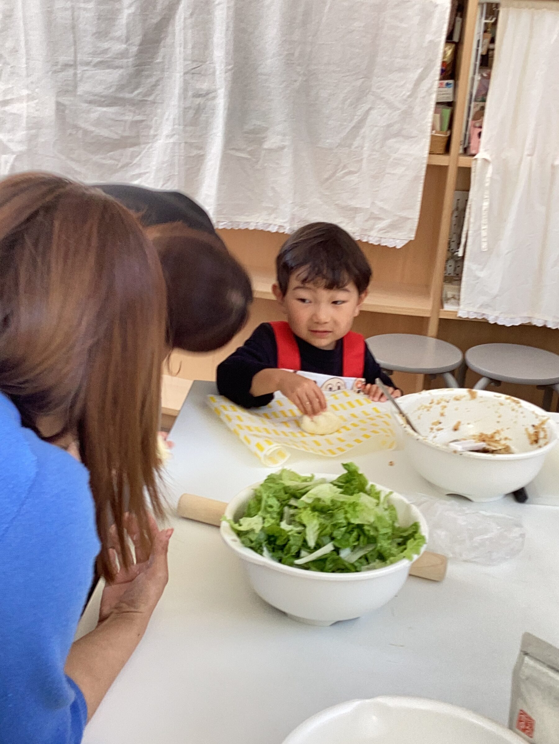 親子で野菜の皮むきや型抜き、果物を潰してアイスクリーム作り、肉まん作り盛沢山でした✨