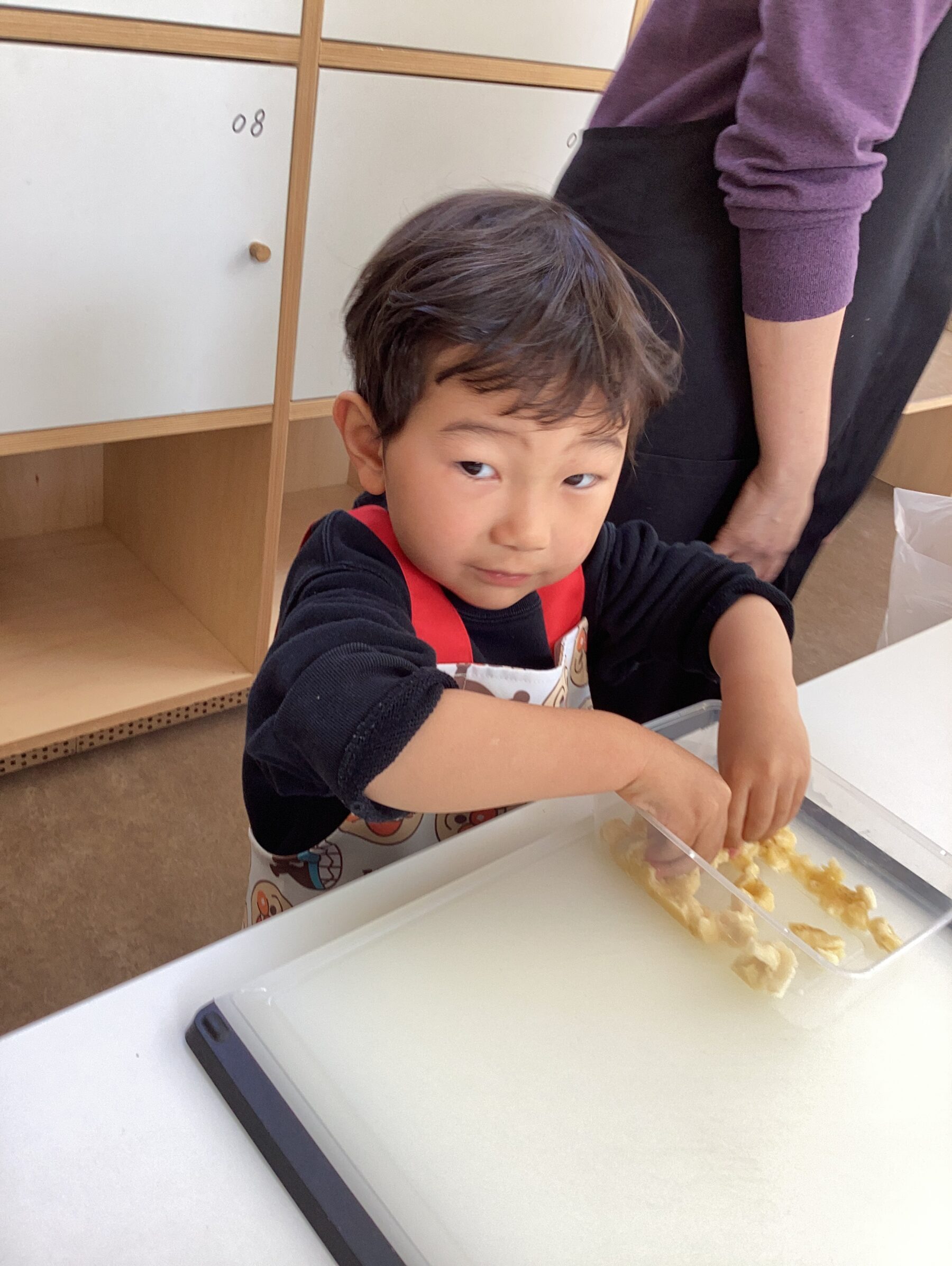 お腹が空いた子ども達は盛り付けながらつまみ食い