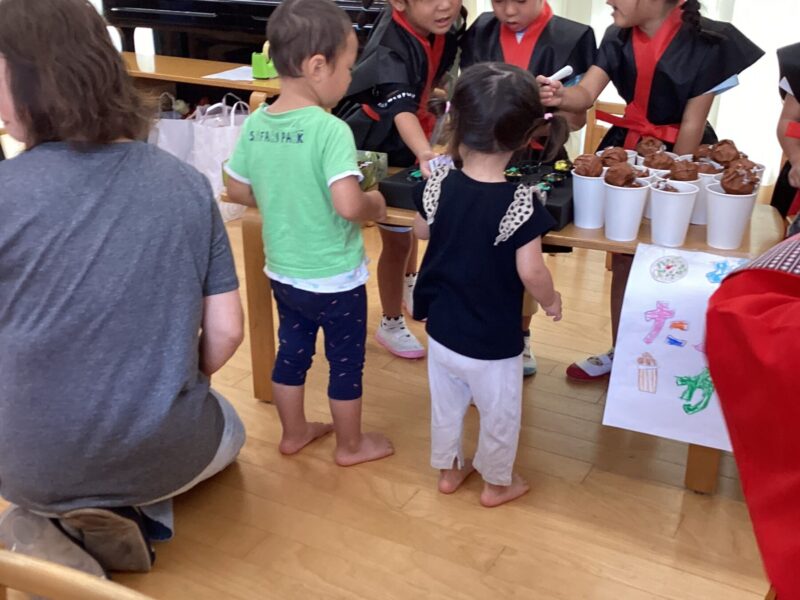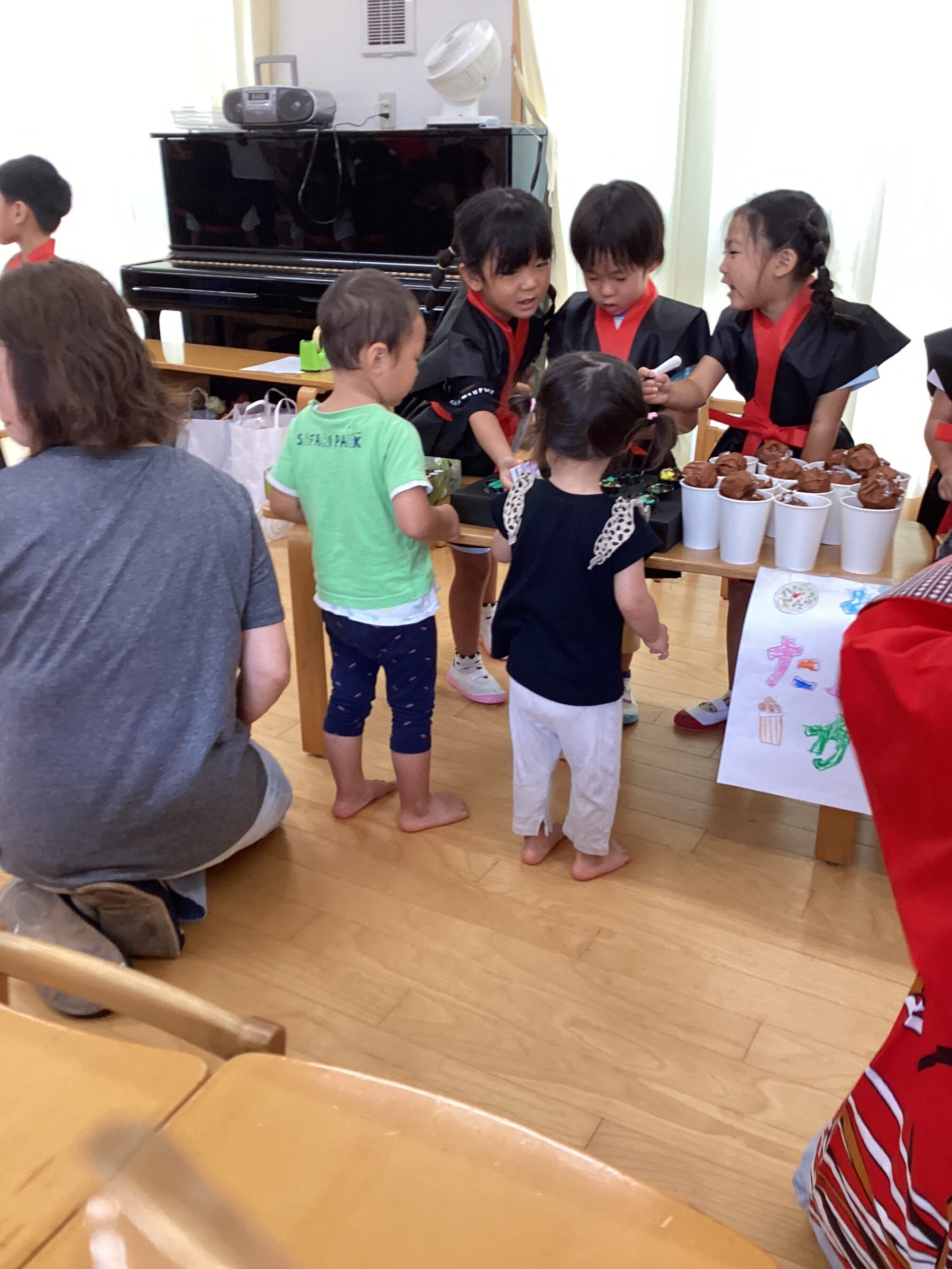 9月3日に年長児さんがお祭りごっこをするということで、招待をもらい参加しました。