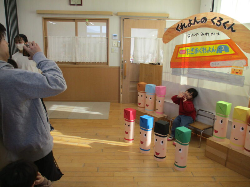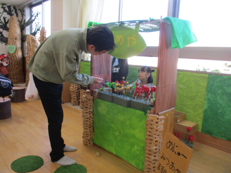 今日はふぁみりーdayがありました🎶親子でごっこ遊びをしたり、ハーブティーを作って飲んだり、福引を引いたり、野菜スタンプをしたりなど、各クラスに広がる絵本の世界を楽しむ姿がたくさん見られ、とっても素敵な時間となりました
