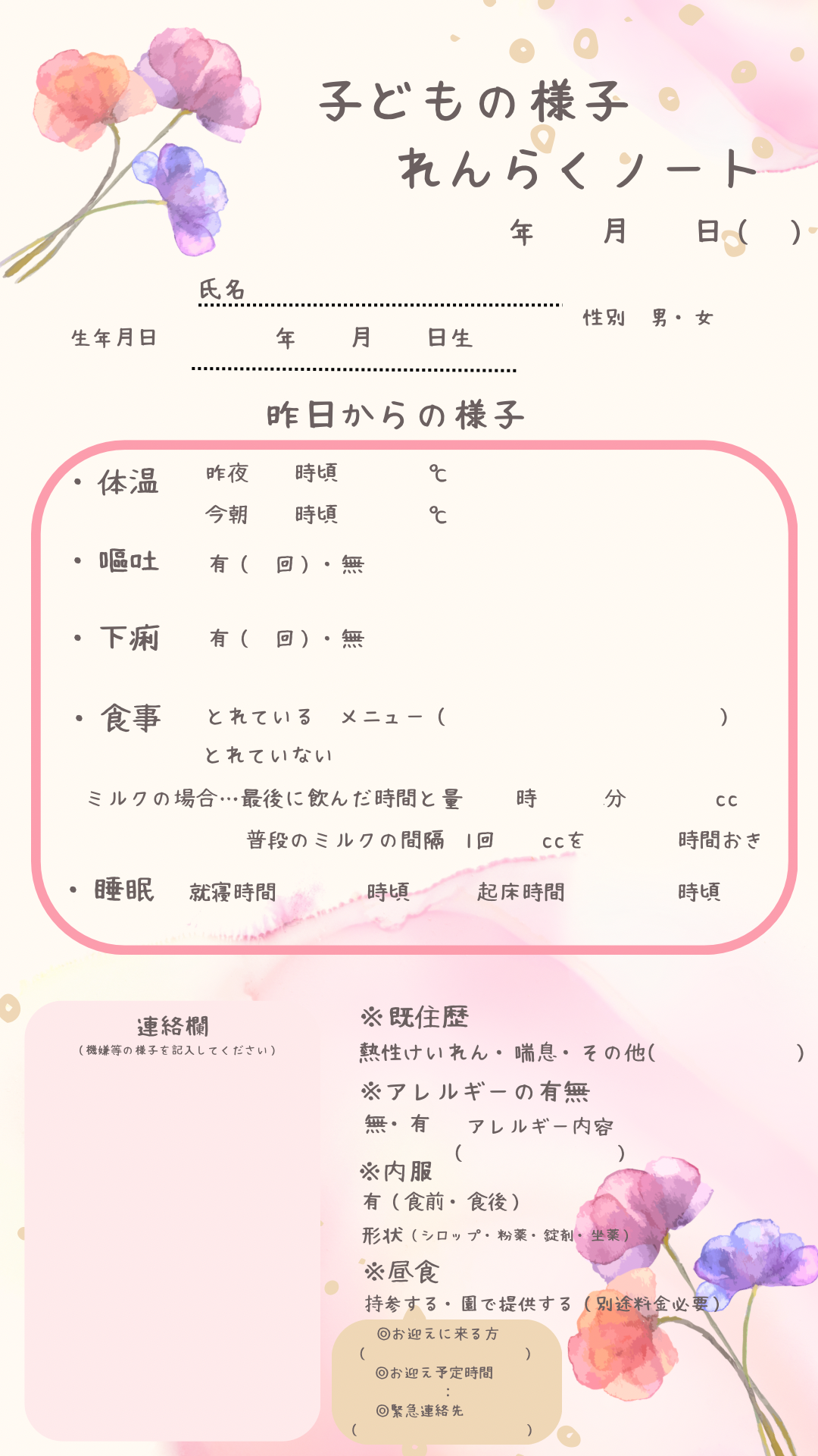 登園届(保護者記入)
